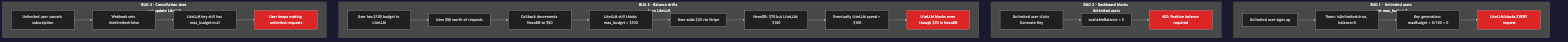 | subscription.deleted (Unlimited) | No LiteLLM sync | Set maxBudget: 0 (or remaining credit balance) |