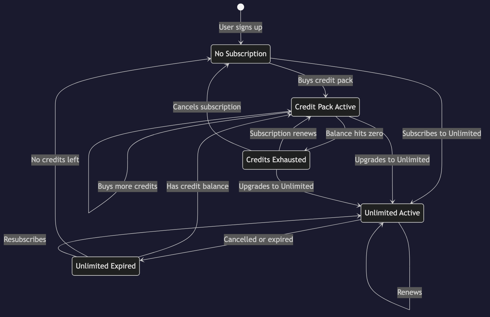 | Unlimited user cancels | isUnlimited=false, LiteLLM: max_budget=0 (or remaining credits) |